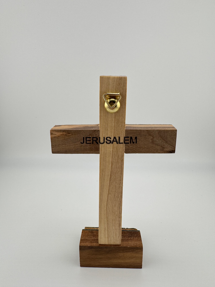 Hand-Carved Olive Wood Crucifix with Mother of Pearl Borders & Base | Made in the Holy Land