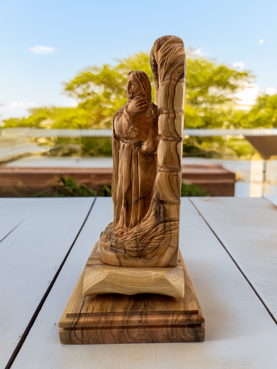 Hand-Carved Olive Wood Figurine – Jesus Christ Knocking on the Door