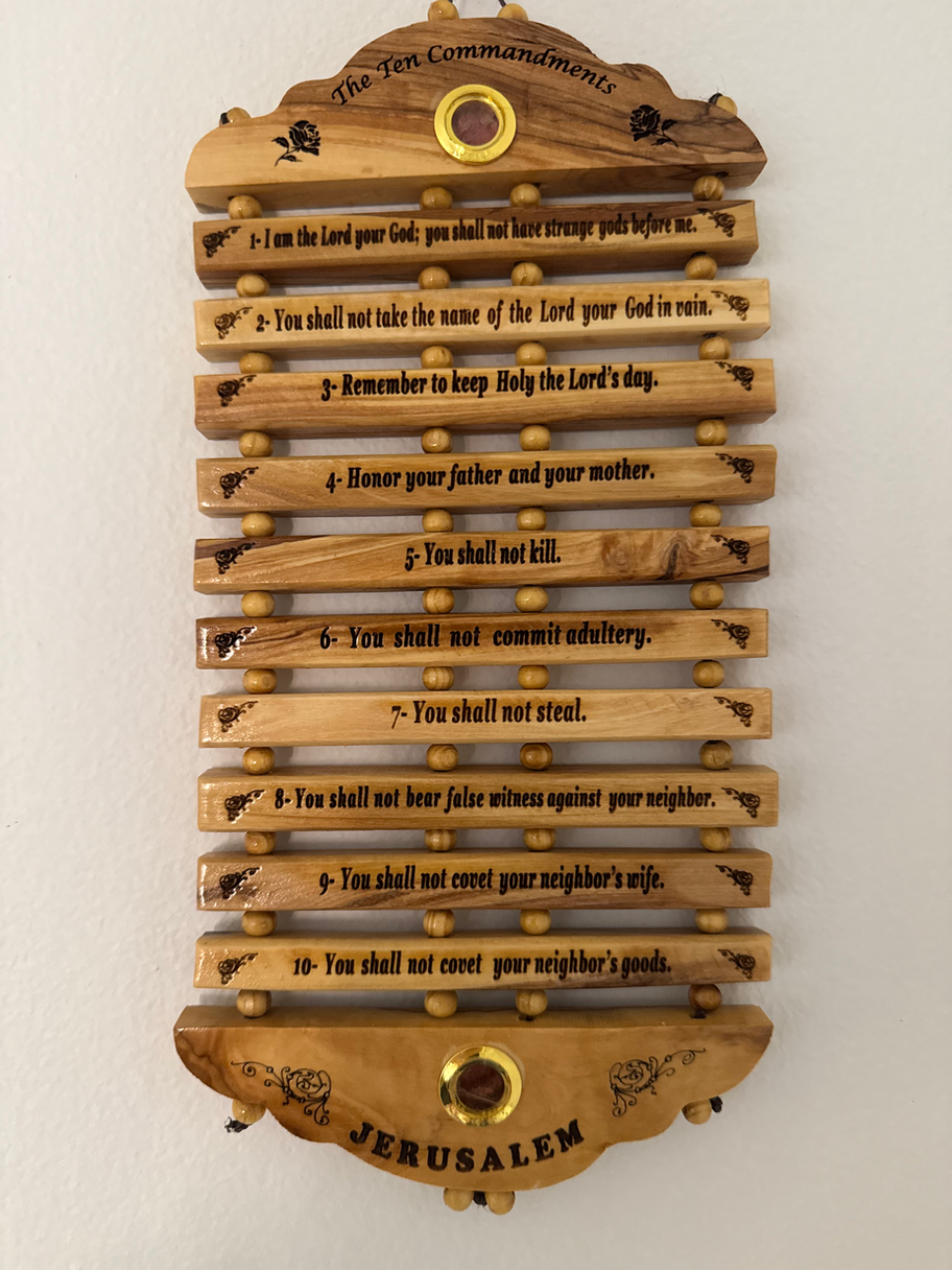 •Handcrafted Ten Commandments Wall Hanging made from genuine olive wood from the Holy Land.