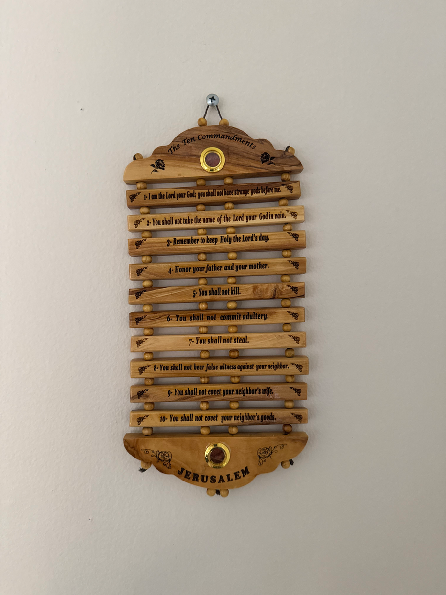 Handcrafted Ten Commandments Wall Hanging made from genuine olive wood