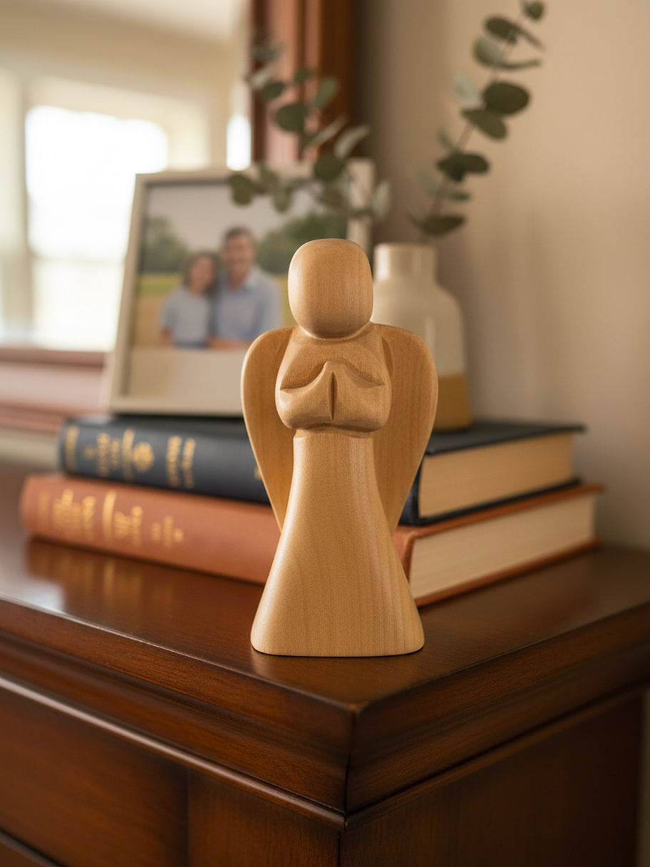 Handmade Olive Wood Statue – Small Faceless Angel in Prayer