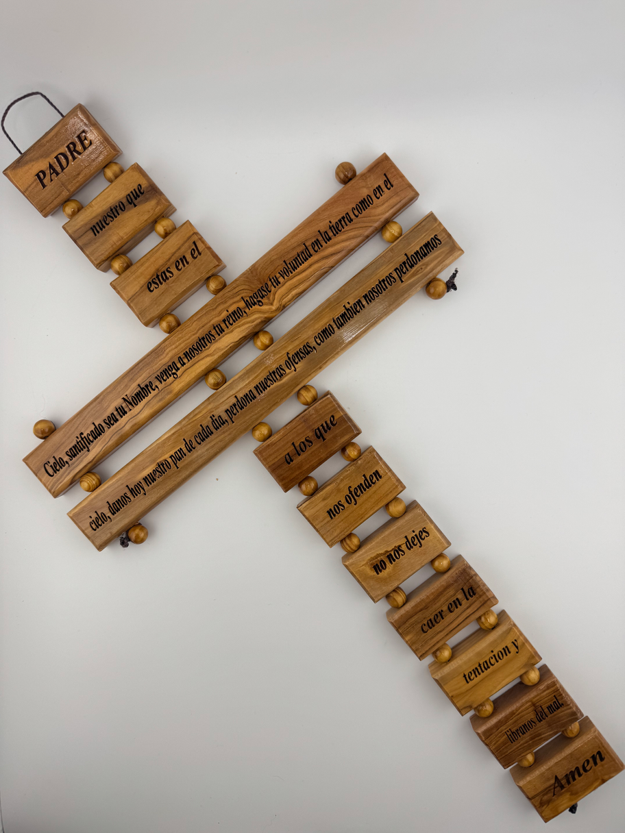 Handmade Olive Wood Wall Cross – Our Father Prayer (Spanish)