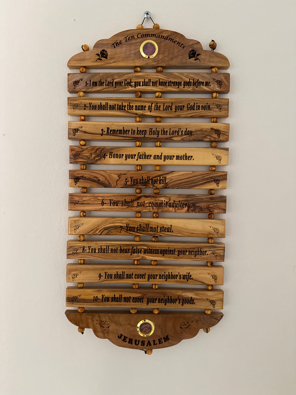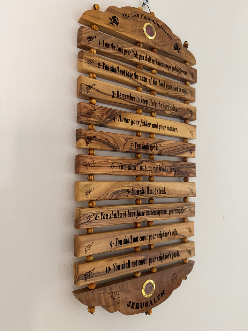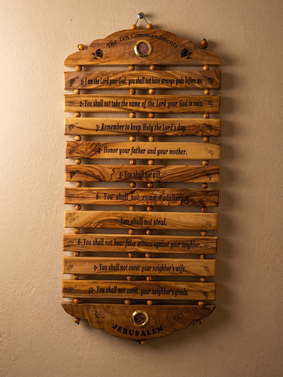 Large Handcrafted Ten Commandments Wall Hanging made from genuine olive wood